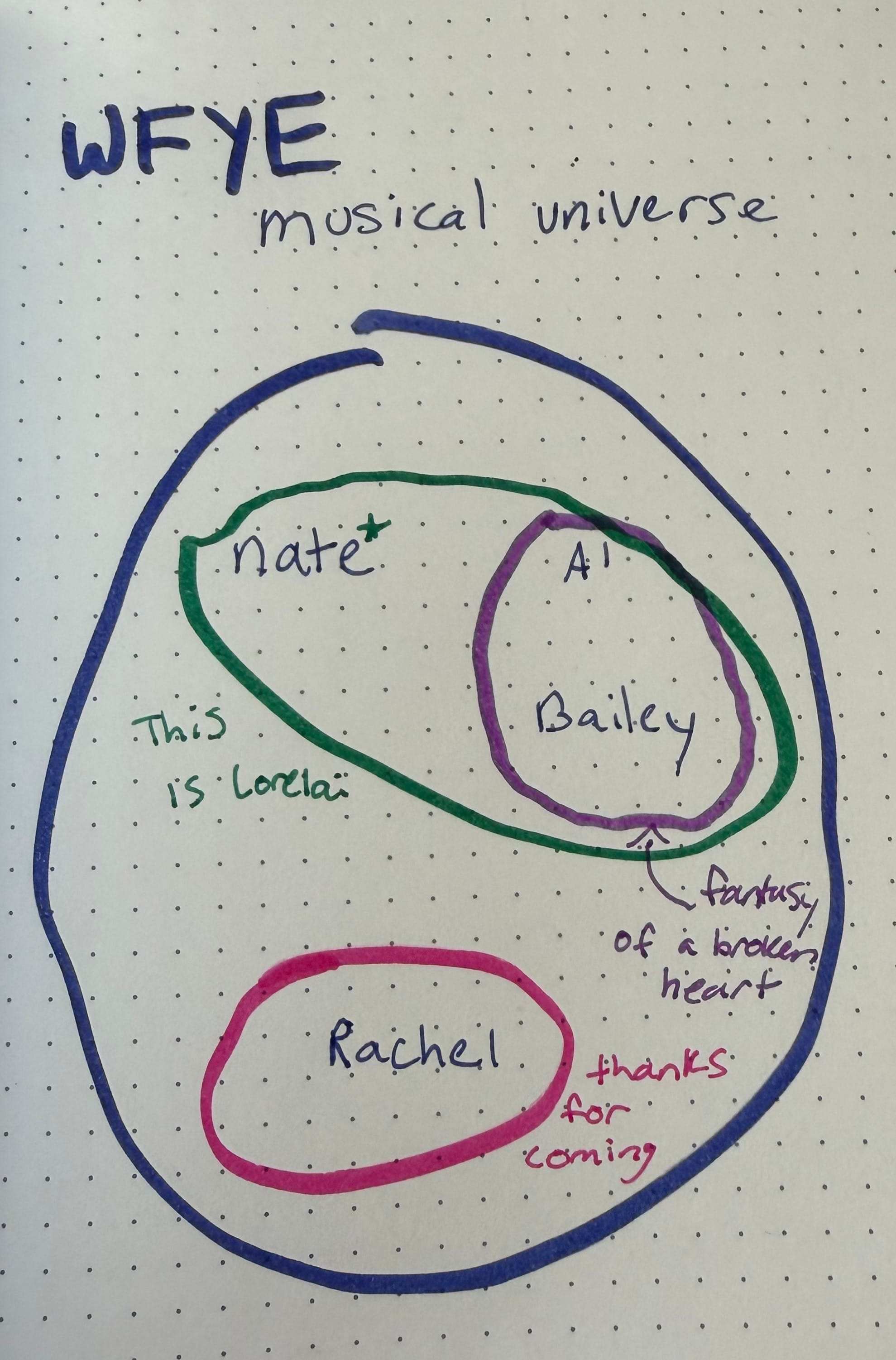 The last time I'd gone to a show at that venue was to see ascendant indie rocker MJ Lenderman, who coincidentally also had a project involving Nate Amos in the opening slot. Williams' opener, Brooklyn art rock duo Water From Your Eyes, exist in a broader musical universe of today's buzziest indie projects, as drawn out below.