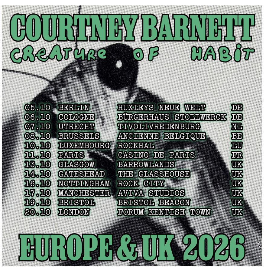 First things first, can we take a moment to acknowledge that the UK is still very much a part of Europe? Artists, bookers, and promoters really need to stop confusing the European Union with the whole damn continent. Ahem. Good news anyway for residents of Germany, The Netherlands, Belgium, Luxembourg, France, and the UK, as Courtney Barnett has announced live shows in all those countries in October, extending her Creature of Habit tour that kicks off May 1 in Austin, TX.