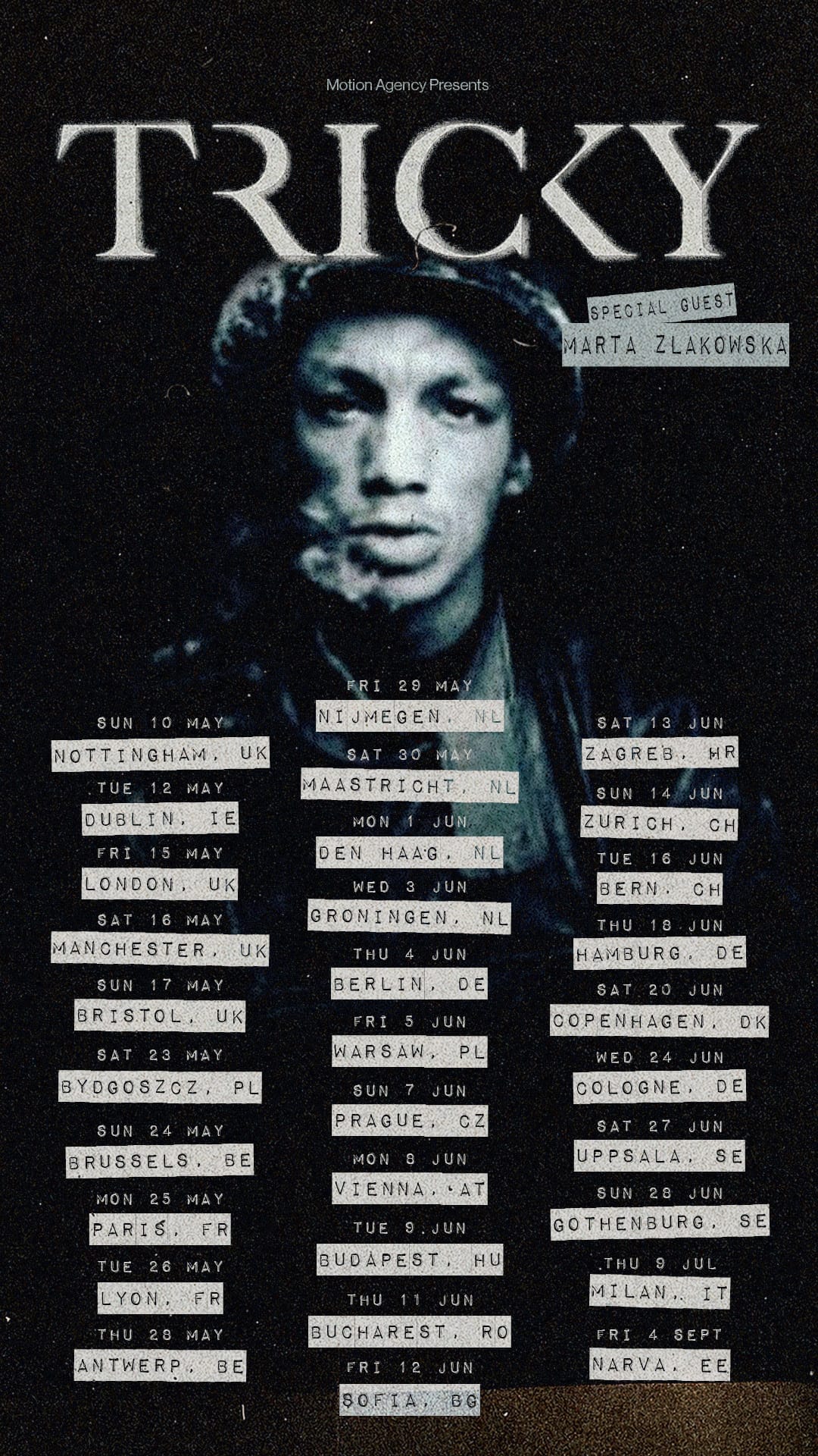Złakowska also features on new single "Out of Place," out today. In fact, it was originally written for her, intended for her 2025 solo release Out The Way, but ended up being kept for Tricky's own record, where it features as the closing track.