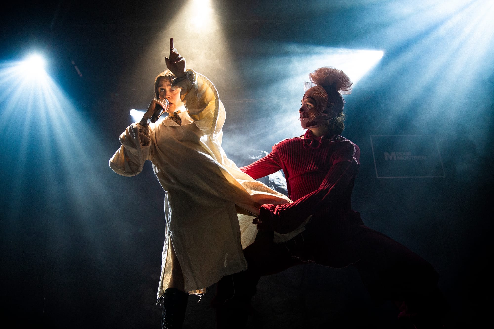 Switzerland’s Flèche Love unofficially inaugurated M for Montreal with a pre-festival showcase. Stopping by Montreal in the middle of her promotional tour for GUÉRISON (2024), the Geneva-based artist put on an eclectic, art poppy set, complete with a backup dancer draped in red fabrics and a knit balaclava, an earthy set design of rock piles, and utterly hypnotic vocals. To complement the record’s themes of reconnection and returning to one’s basics — her album focuses on her relationship with her Algerian background, and how she learned to embrace her mother’s Amazigh culture through music and writing — she effortlessly switched between languages, genres, dance styles, and more.