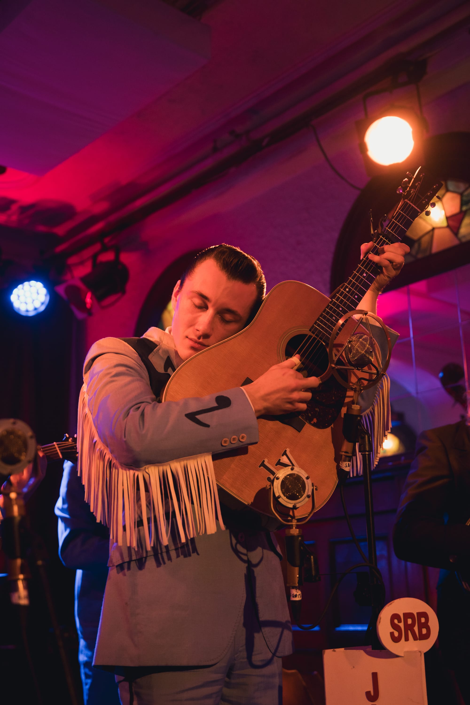 Folk singer-songwriter Jake Vaadeland was truly one of the best performances during the entire festival. Hailing from a super small town in rural Saskatchewan, the performer specializes in original compositions sung in the 1940s and 50s country style. Watching him is like going back to the days of radio as main entertainment, with the Sturgeon River Boys — a guitarist, banjo player, and upright bassist — finger-picking into an old-fashioned radio. His Canadian country drawl and fringe-embroidered suits, coupled with the strict adherence to the genre, transformed his performance into a full period piece.