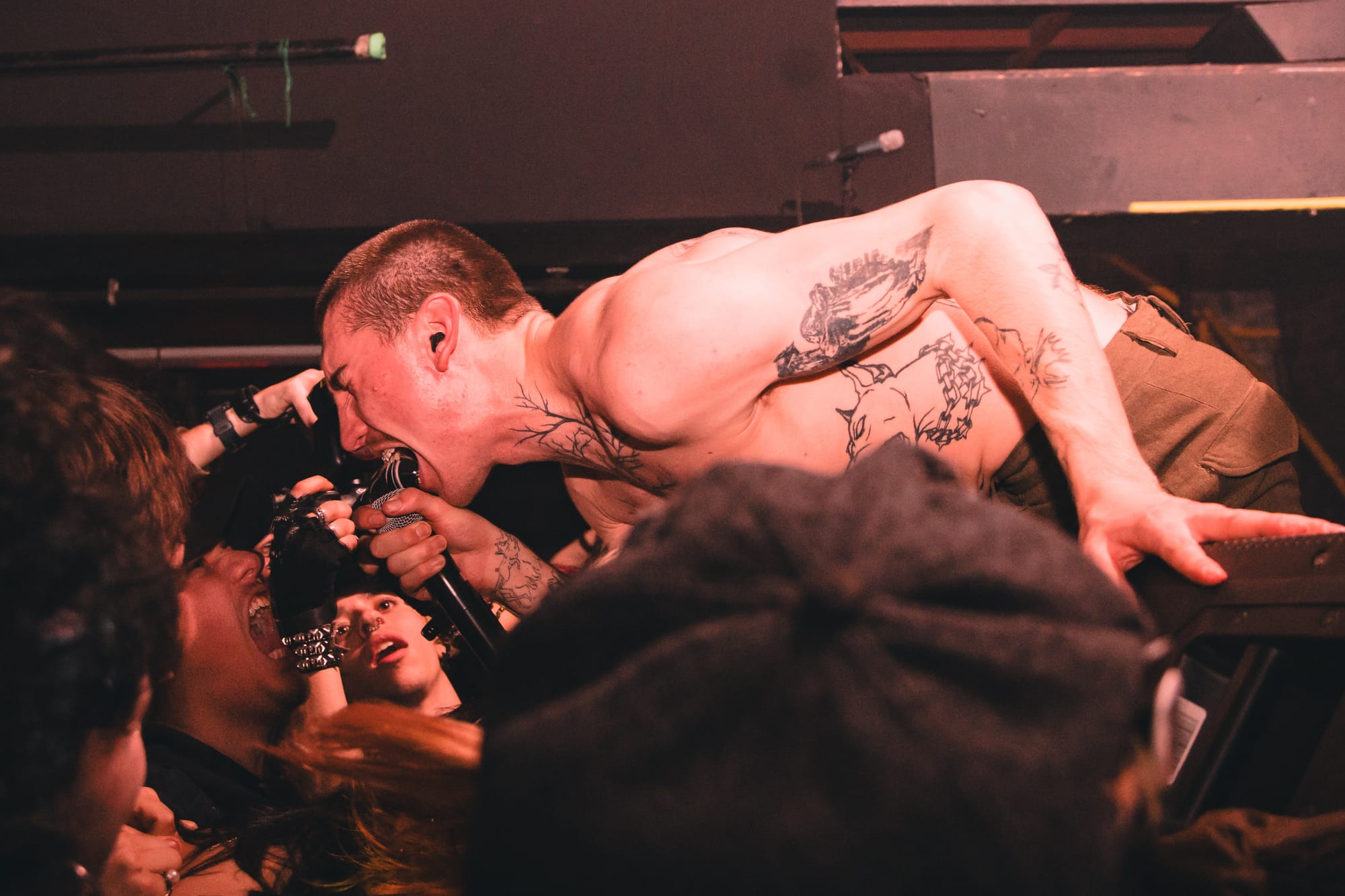 Electric, blaringly loud, and simply weird, the band’s singer-poet Karsyn Henderson was, as a fan told me while in line for the entrance, “the real deal.” The combination of folk ballads — usually adorned with a banjo or acoustic guitar and his stripped back, mellowed vocals — and thrashing punk anthems gave the crowd an excellent and varied sample of the band’s many talents…as well as a much-needed break between mosh circles to re-center and focus on the poetic, vulnerable introspections on dysfunction and problems facing the Canadian countryside. Truck Violence is a good band to lose yourself to, especially if you’re into the Chat Pile-ier, more experimental side of hardcore.