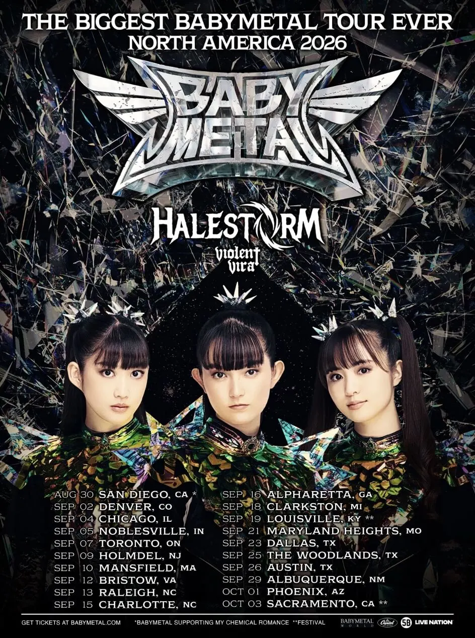 BABYMETAL have announced a full-scale North American run for 2026, bringing along hard rock powerhouse Halestorm and the rising, shadowy energy of Violent Vira.